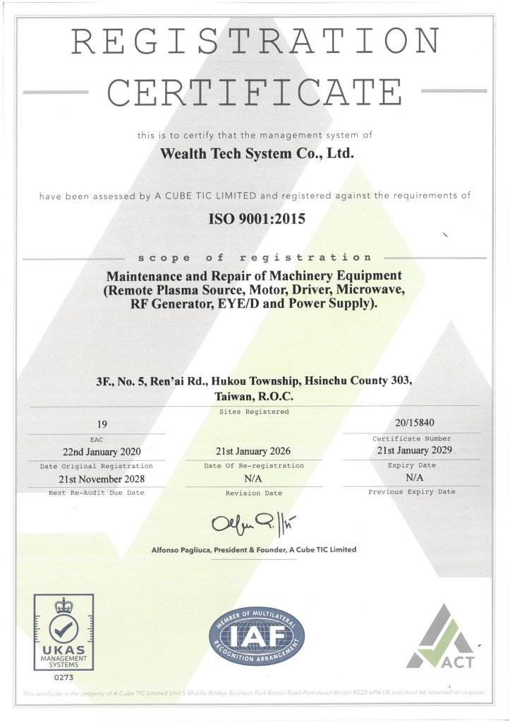 延攬半導體維修十年以上之資深工程人員,秉持精進技術、講究效率、誠信服務、持續改善之精神從事半導體及TFT-LCD設備維修及保養服務,維修保養品項如下:微波產生器 MW(Microwave)、馬達 Motor、驅動器 Driver、遠端電漿產生器 RPS(Remote Plasma Source)、射頻產生器 RF Generator、光譜儀 Endpoint Detector、電源供應器 Power Supply…等。