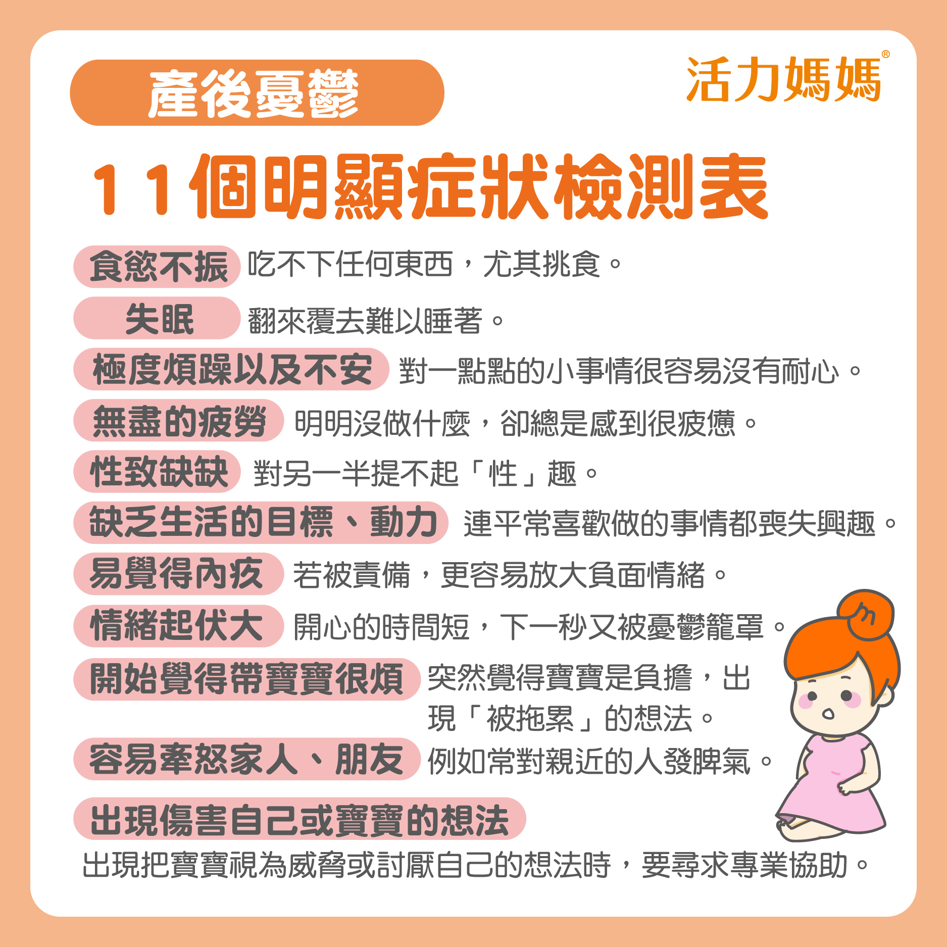 - 療癒點:提醒妳在成為母親之前,妳先是妳自己。鼓勵在疲憊中給予自己擁抱。