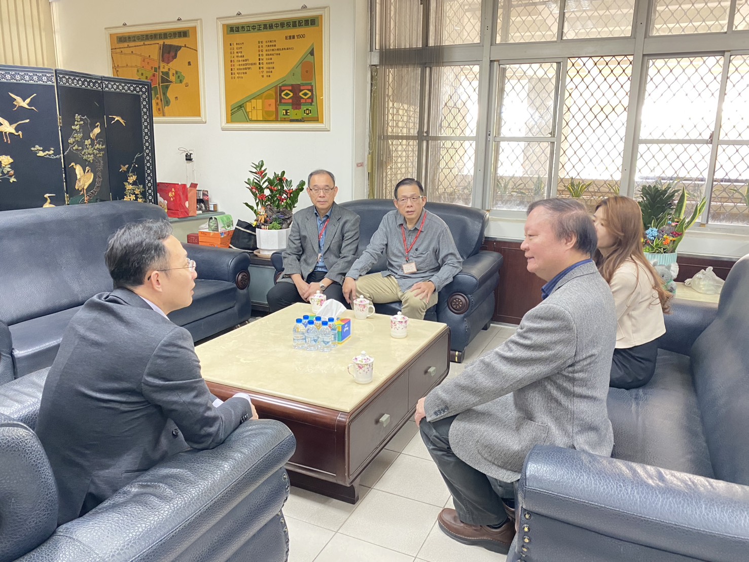 隨後,王政彥校長於上午近十時專程前往第三分區中正高中及第四分區鳳新高中,慰勉現場監試老師與試務人員的辛勞付出,並感謝完中正高中校長陸炳杉及鳳新高中校長陳江海全力協助,讓高雄一考區各項試務得以順利、周延成。