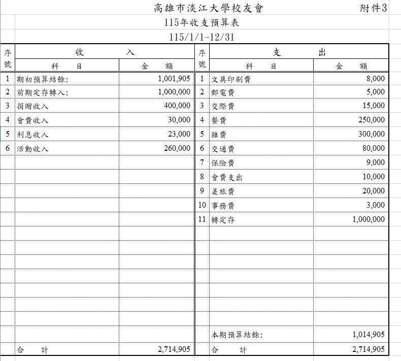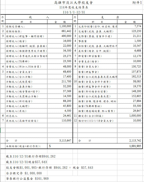 案 由:請審議114年度收支決算書案(如會議手冊附件1)。