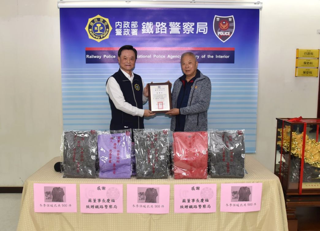 蘇董事長慶福於儀式中表示,這批保暖衣不僅是實用的執勤配備,更象徵基金會對鐵警同仁的支持與關懷。他強調,鐵路警察肩負交通安全與治安維護重任,工作環境艱辛,希望透過此次捐贈,在寒冷天候中為同仁帶來一份溫暖與守護,讓員警能以更健康的身心狀態,持續投入繁重而重要的警政工作。